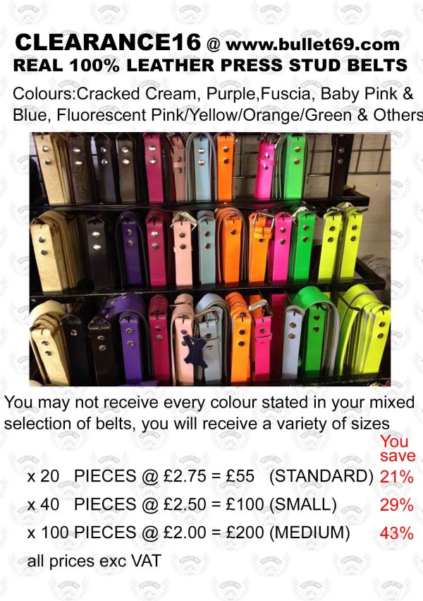 New Arrivals Clearance Lines Sale Room (Best Buys) Accessories Belts BRACES BUCKLES DOG/PET COLLARS (NEW) FETISH HIDE LEATHER BELTS LEATHER ACCESSORIES Leather Belts Leather Neckbands / Chockers Leather Wristbands NON LEATHER BELTS SPECIAL LEATHER BELTS Studs and Spikes TROUSER/SUIT BELTS VITALI for MEN VITALI for WOMEN VITALI Unisex Wholesale Clearance Offer
