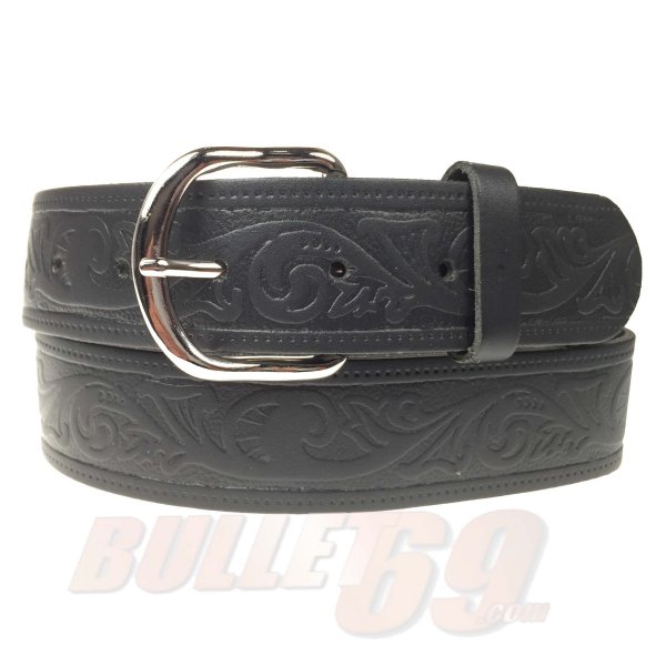 1.25" embossed belt/curved silver buckle